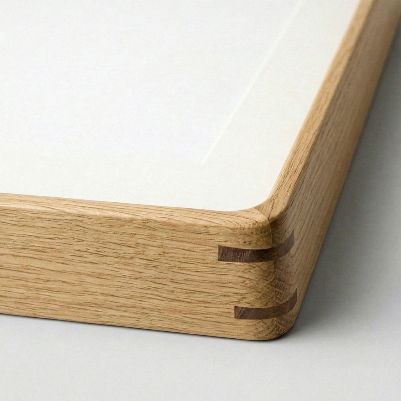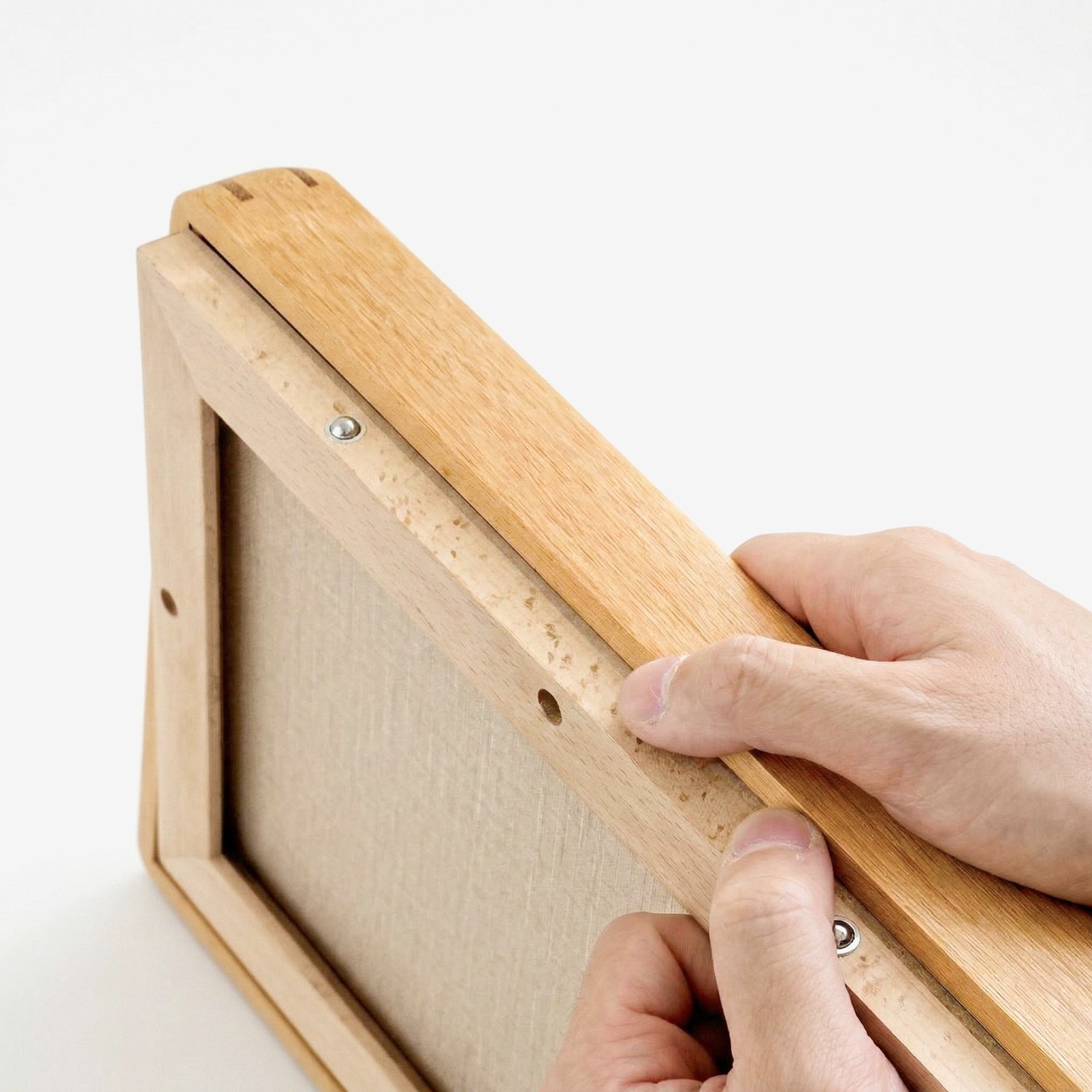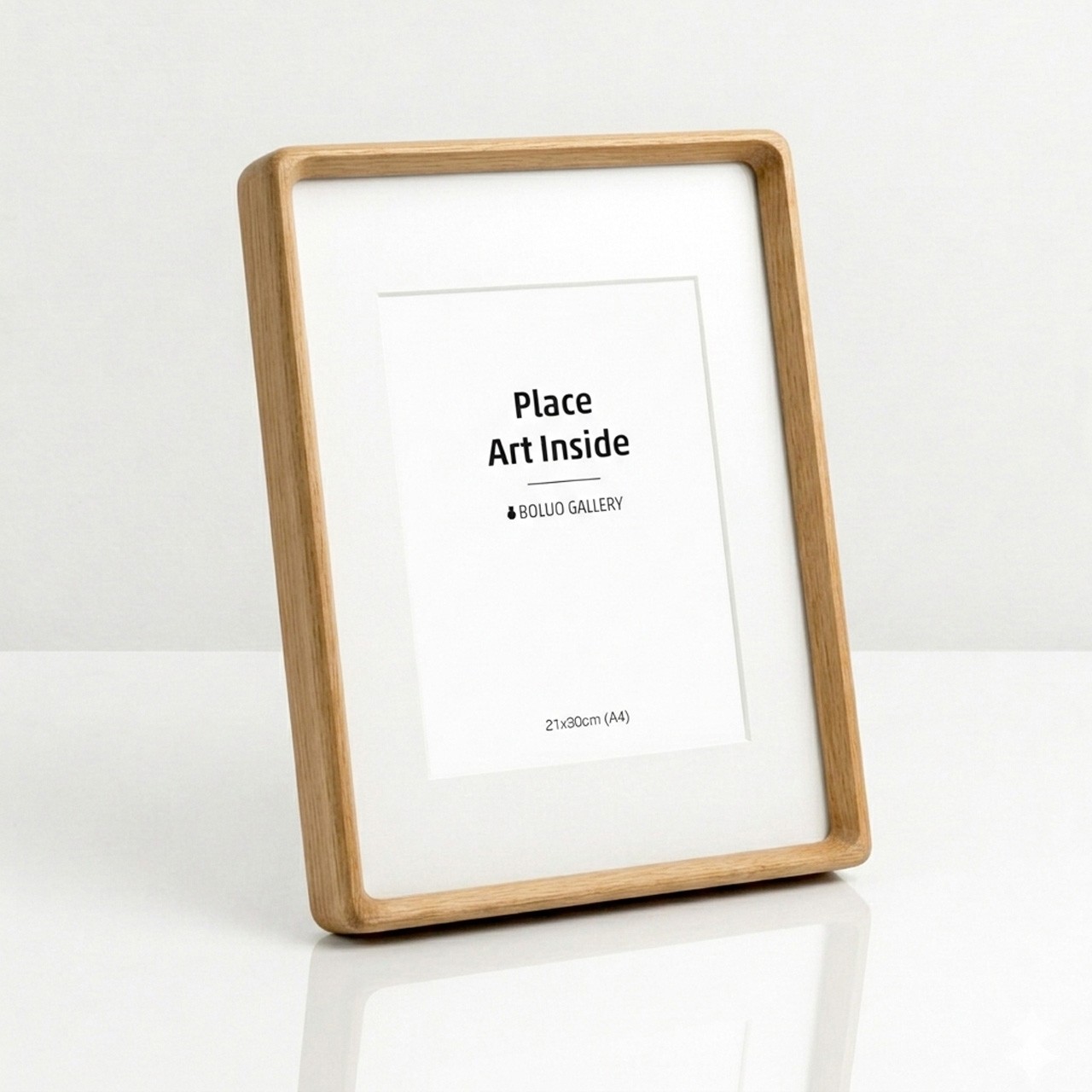 Rounded-corner solid wood mortise-and-tenon frame + 2 mm clear acrylic glazing + 1 mm inner mat board + moisture-resistant corrugated board + 13 mm backboard (with wooden tabletop stand dowel)