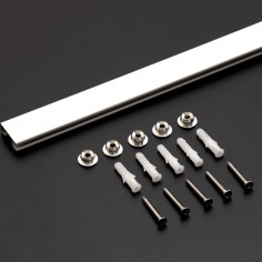 ‣ 材料:1.5m畫軌*1、1.2m吊線*2、掛畫器*2、配件包(螺絲*6, 膨脹螺絲*6, 固定器*5)<br />