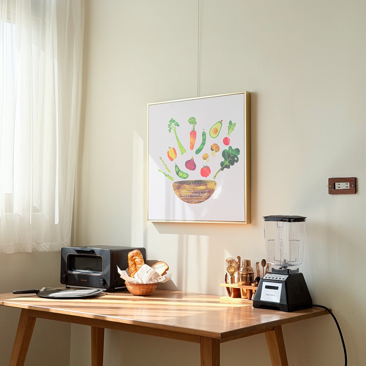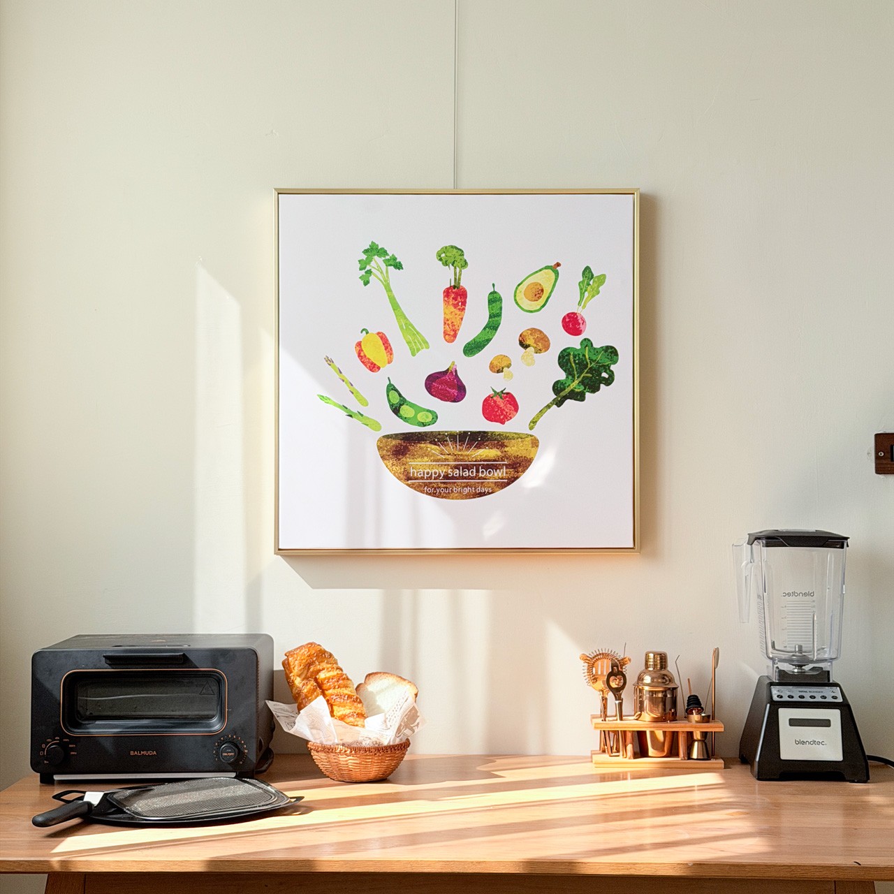 【福利品】Happy Salad Bowl 菠蘿選画所 <p>(1) 尺寸:52*72cm (含框) <br />(2) 框色:正常木框 (請見圖) <br />(3) 價格:原價$ 2500, 免運特惠$2100<br />(4) 畫作狀況:畫布右下小髒污。</p> <p>✨貼心小提醒:福利品無法退換貨。</p> F-KDDK6605G