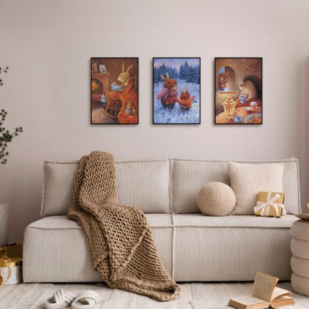 小動物出遊三幅聯畫組合
