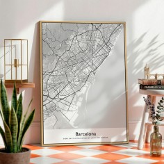 <p>畫面以俐落的地圖線條,<br /> 勾勒出擴展區經典的棋盤式街道,<br /> 筆直與轉折之間,藏著城市的秩序與自由。<br /><br /> 黑白層次交錯的紋理,<br /> 像光影在石牆與街角之間流動,<br /> 讓巴塞隆納的節奏,被安靜地留在牆上。</p>