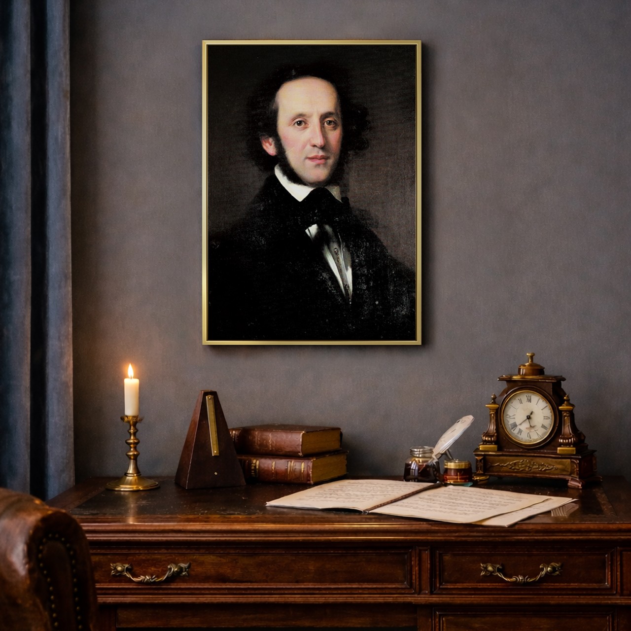 蕭邦 菠蘿選画所 <p>蕭邦被譽為「鋼琴詩人」,<br /> 用最細膩的觸鍵,寫下浪漫時代最深的靈魂。</p> <p>他將鋼琴化為情感的語言,<br /> 在優雅與憂鬱之間,留下跨越世紀的旋律。</p> <p>從《夜曲》的靜謐,到《波蘭舞曲》的民族精神,<br /> 他的音樂至今仍在時間深處輕聲迴響。</p> <p>這幅肖像不只是歷史的瞬間,<br /> 更是一段仍在呼吸的詩意,<br /> 讓空間沉浸於優雅與靜謐之中。</p> MPMC4608