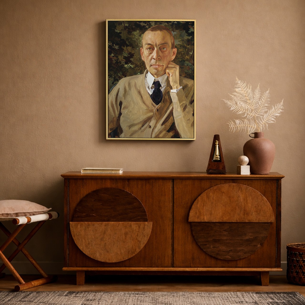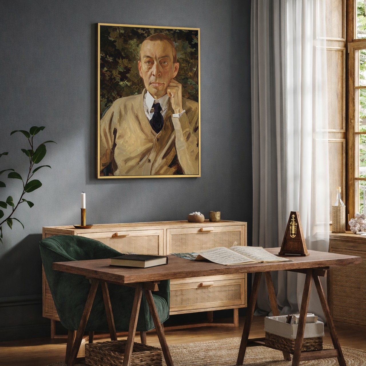 畫中的他神情沉靜而深邃,