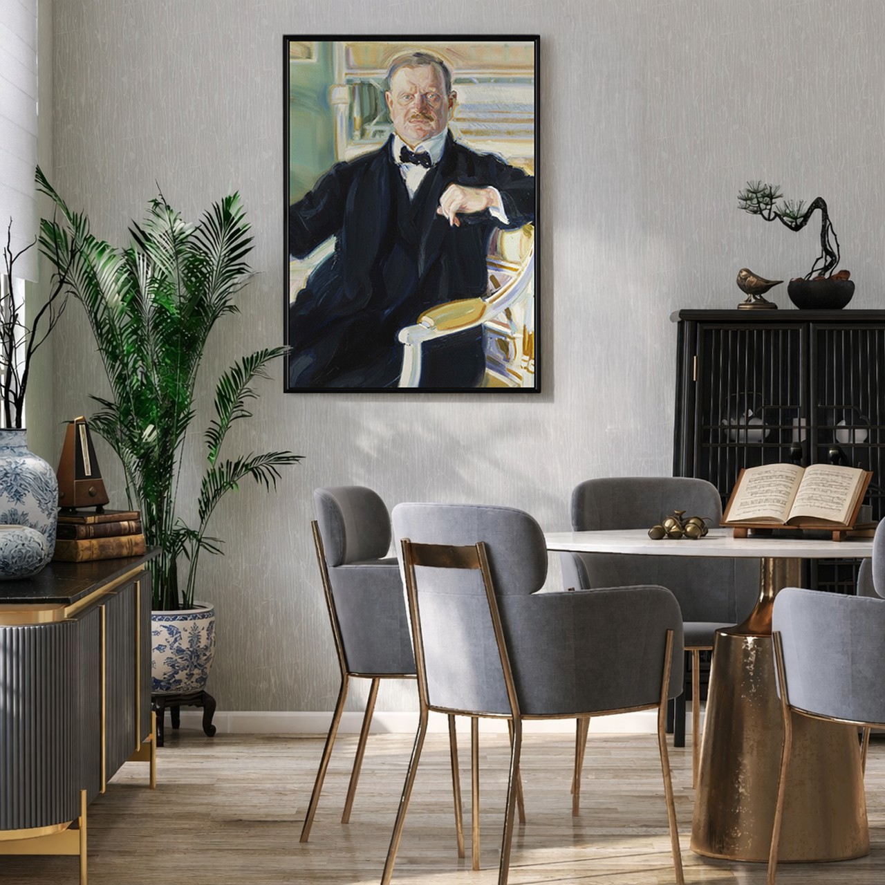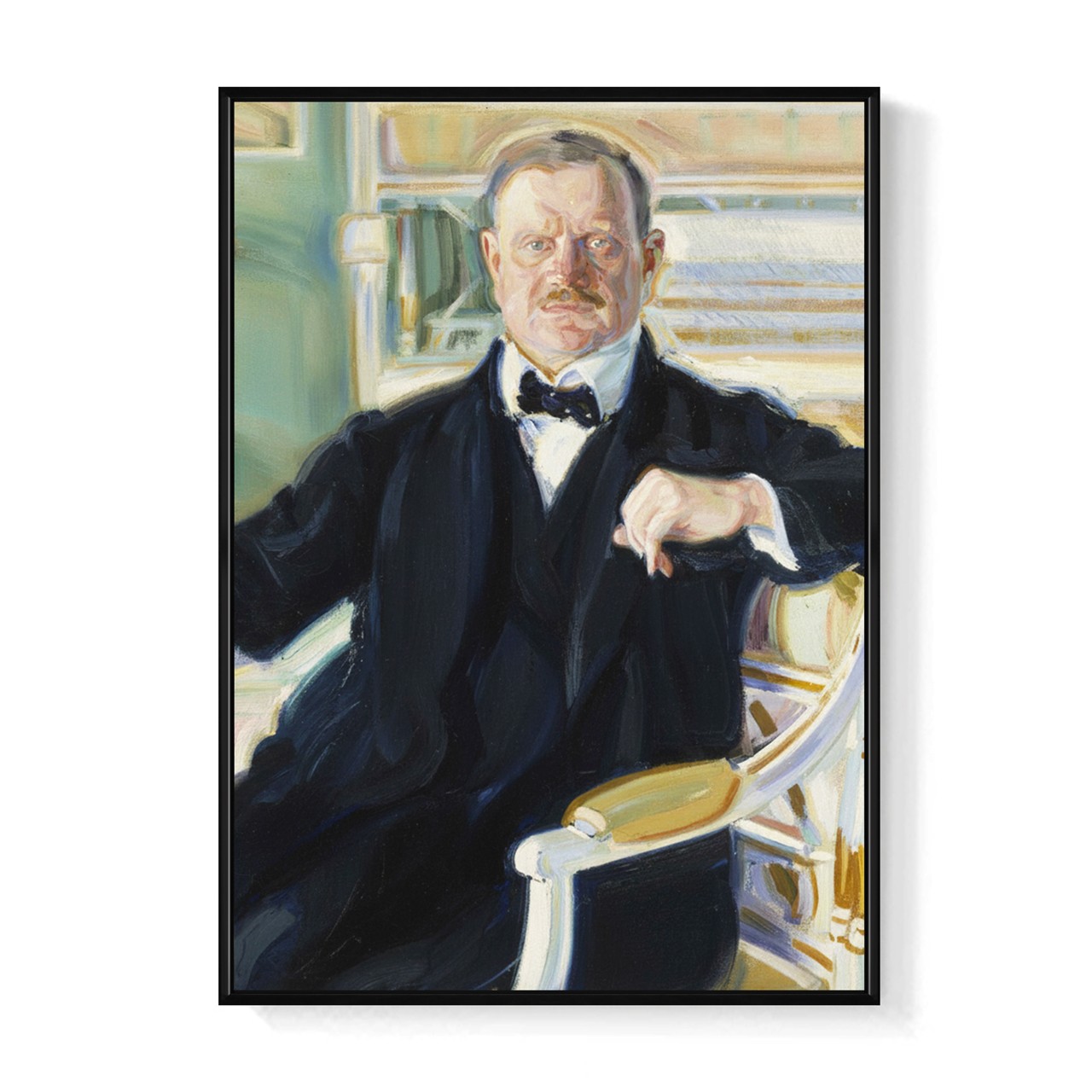 尚·西貝流士 菠蘿選画所 <p>畫中的尚·西貝流士神情沉靜而深邃,<br /> 彷彿正聆聽北方森林與湖泊的聲音。</p> <p>這位芬蘭作曲家以壯闊而深沉的交響音樂聞名,<br /> 《芬蘭頌》更成為象徵民族精神的經典旋律。</p> <p>在這幅肖像的靜謐光影之中,<br /> 彷彿仍能感受到那來自北歐大地的宏闊回聲。</p> MPMC4616