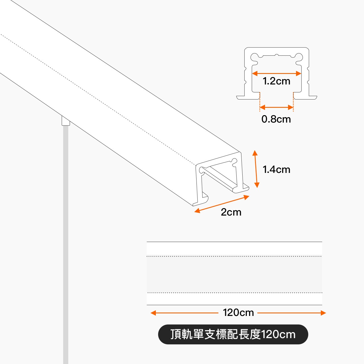 1.2m軌道*1、配件包(螺絲*4, 膨脹螺絲*4)