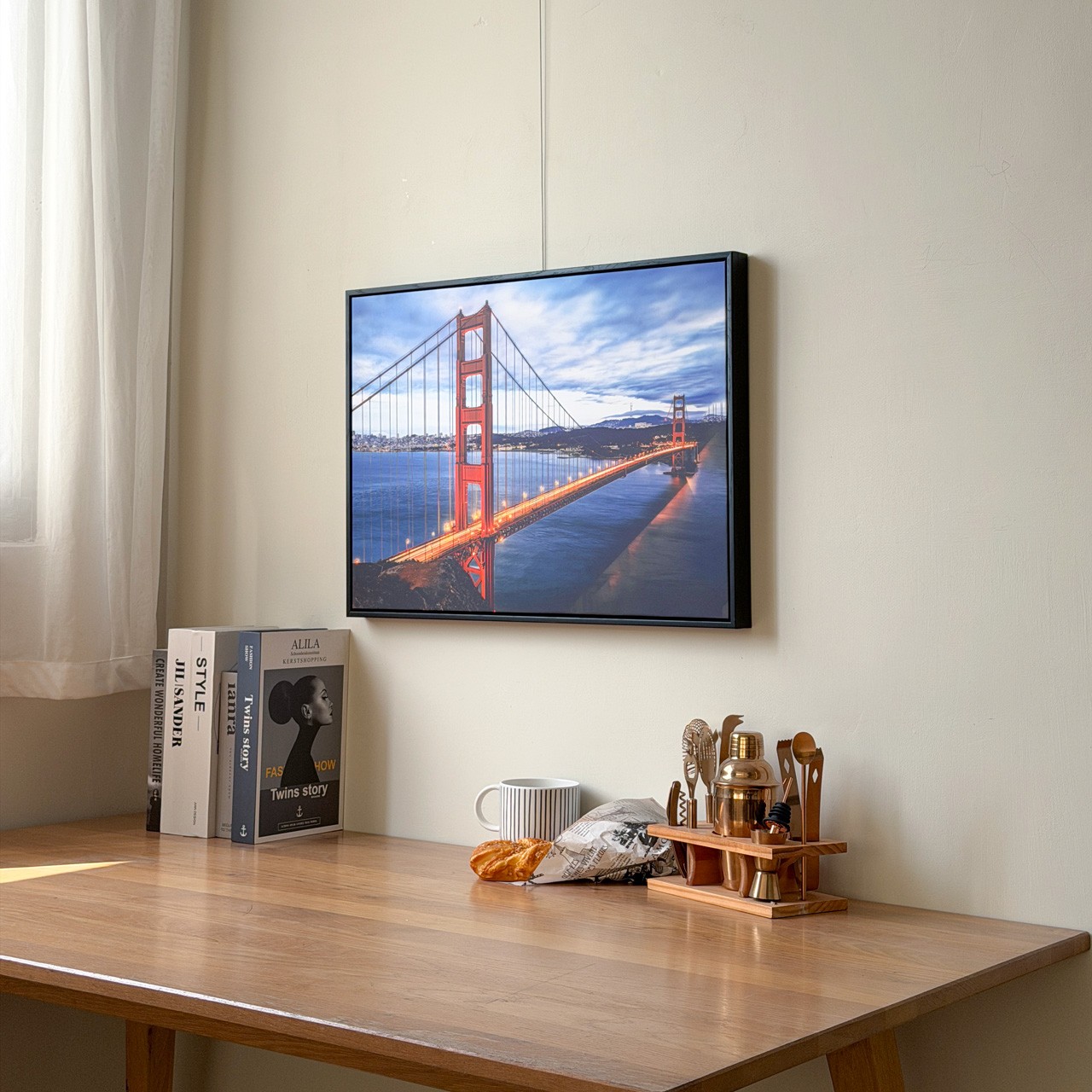 看著金門大橋延伸至海天一色,將舊金山的暮色定格在客廳的一角。