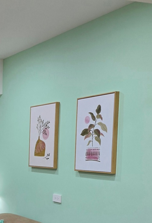 每一幅畫都很有質感!只是越大幅的畫在懸掛方面對我的挑戰就愈大!幸好設計師一直很有耐心,我應該先詢問之後聽從設計師的建議在掛上畫作,這樣就不會因為掛不牢掉下來而刮花了我新買的浴缸⋯⋯