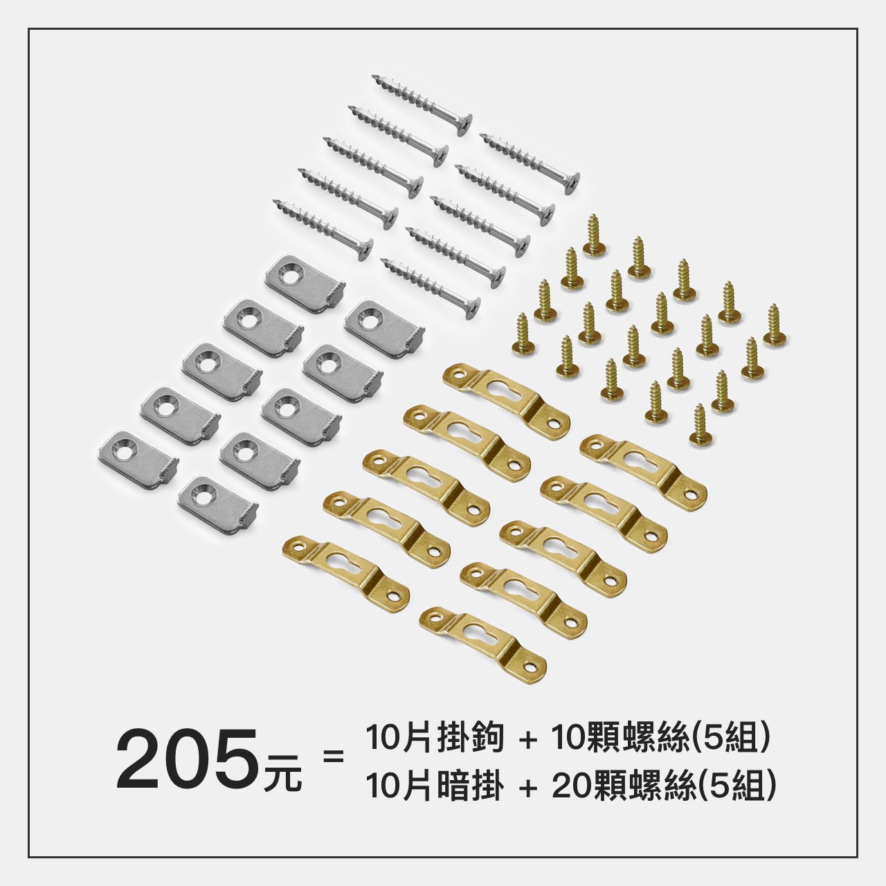 5組 =【10片隱形掛鉤+10顆螺絲】、【10片暗掛+20顆螺絲】