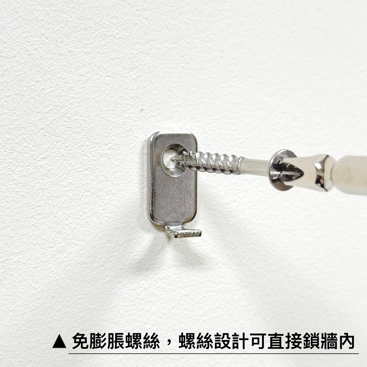 • 大約對準位置,將螺絲鎖入掛鉤的孔洞內固定