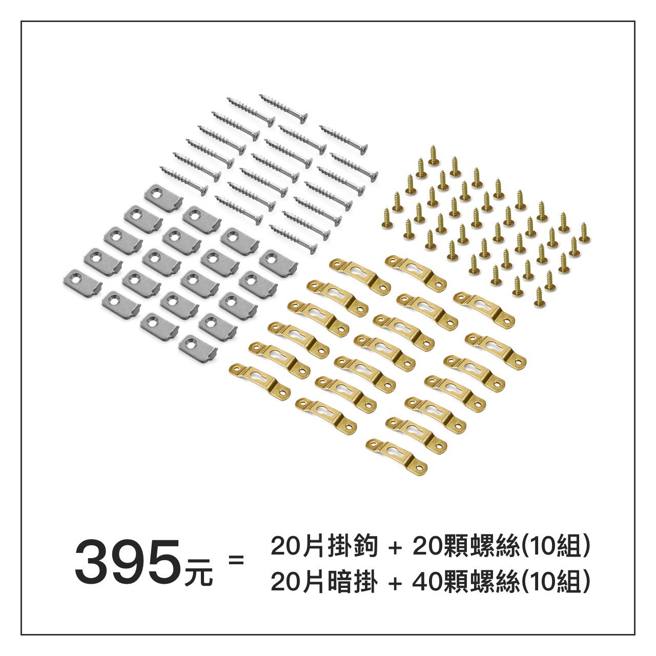 10組 =【20片掛鉤+20顆螺絲】、【20片暗掛 + 40顆螺絲】