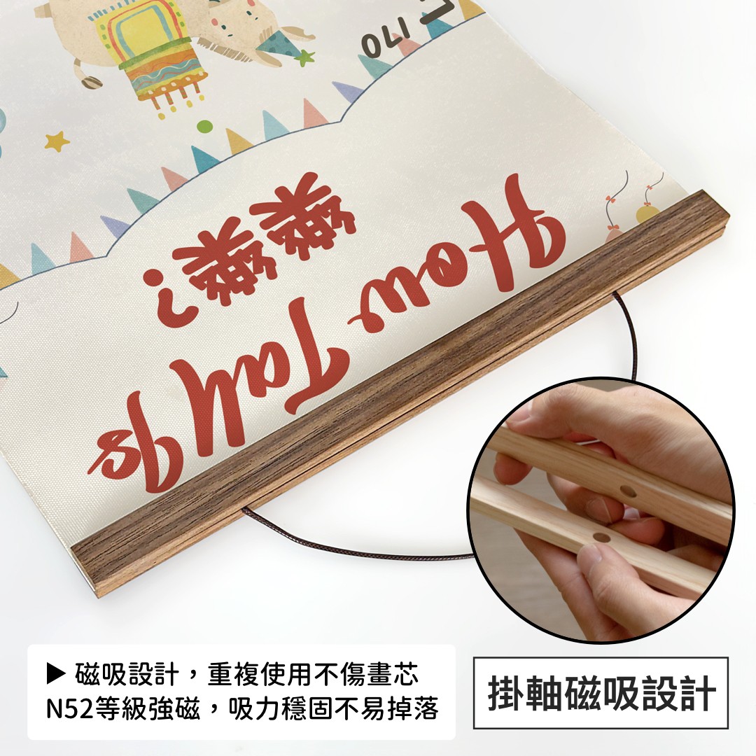 ▶ 磁吸實木掛軸:搭配油畫布畫芯,磁吸設計可以重複使用,更換內容物。